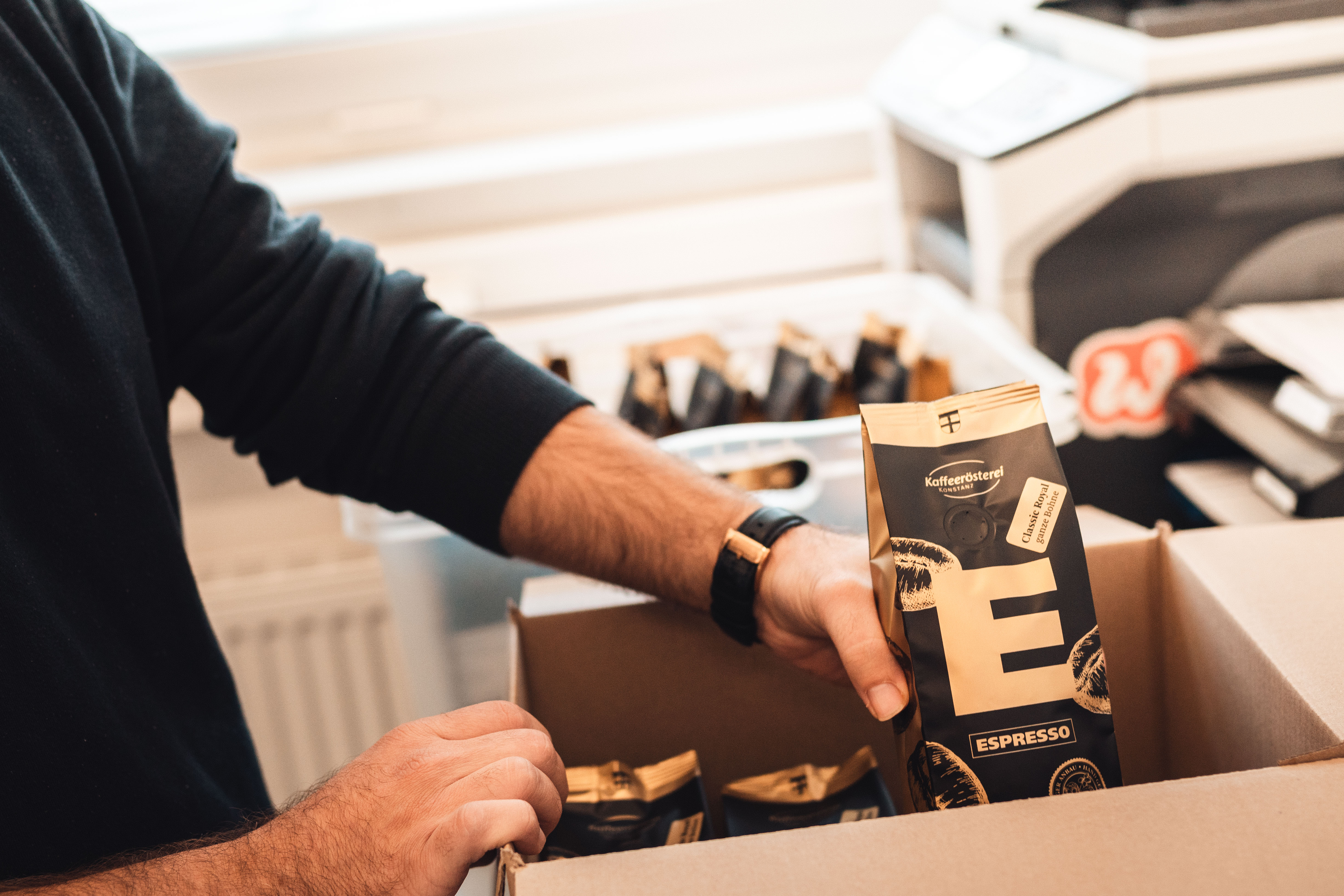 Von unserem Büro wird die Bestellung direkt an die Rösterei weitergeleitet, die Ihre gewünschte Ware frisch verpackt.